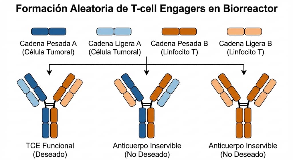 Son difíciles de producir a gran escala: para generar un TCE, necesitas que la célula del biorreactor sintetice 4 cadenas proteicas distintas:
