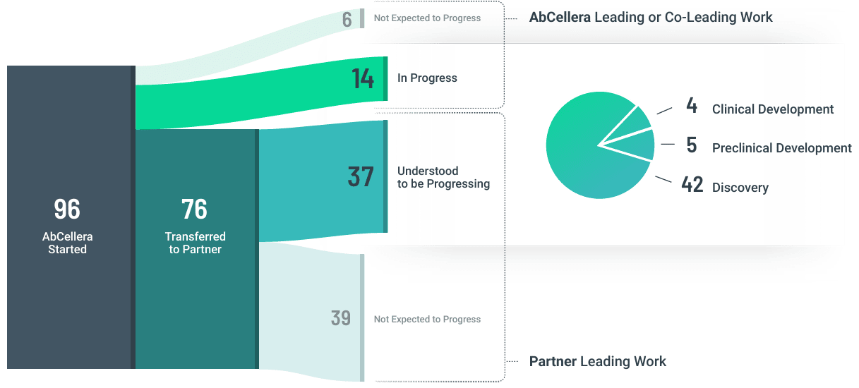 Toda la tecnología de Abcellera ha dado lugar a 3 programas pre-colaborativos con anticuerpos que han iniciado o van a iniciar ensayos clínicos.