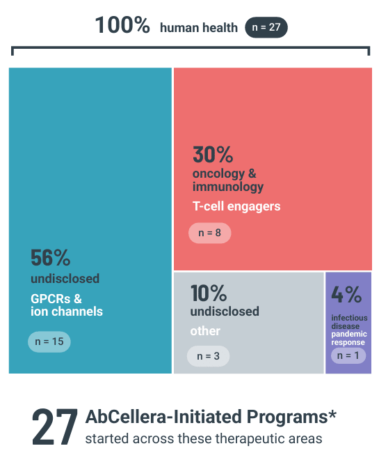 Estos son programas iniciados internamente por Abcellera en los que desarrollan anticuerpos desde 0 en enfermedades que consideren relevantes, de manera independiente a cualquier otra empresa.