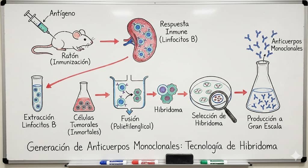 El proceso tradicional de generación de anticuerpos monoclonales consistía en los siguientes pasos: