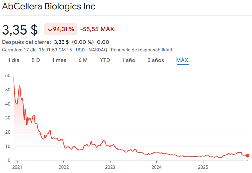 Desde su salida a bolsa, en pleno COVID-19 e hinchada por el éxito de sus primeros fármacos, la acción ha perdido un 95% de su valor bursátil en 5 años y ahora mismo capitaliza apenas 1.000 millones de dólares: