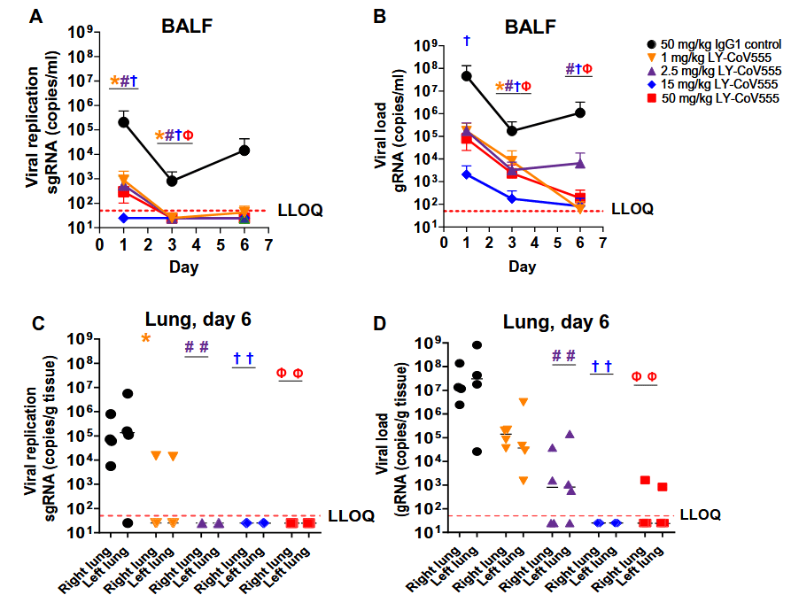 En los estudios realizados, LY-CoV555 previno de manera eficaz la replicación viral en el tracto respiratorio de los macacos, lo que significa que está deteniendo o al menos ralentizando la infección. El efecto es dosis-dependiente: a más concentración, más capacidad de inhibición.