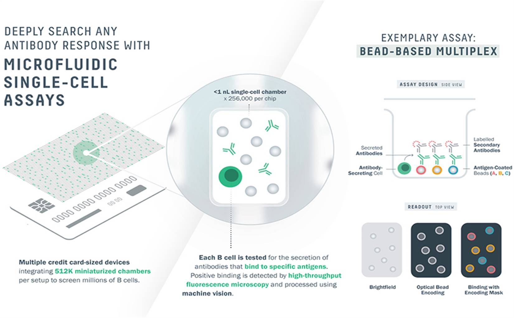 Los chips que emplea Abcellera tienen miles de cámaras individuales; pero eso puede no ser suficiente. Un animal inmunizado puede contener fácilmente 10 millones de linfocitos B diferentes que deben ser analizados.