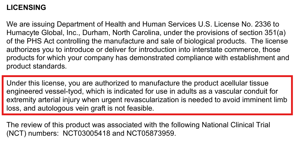 Así que realmente, a pesar de la abultada pipeline, el único activo que tiene Humacyte son los ATEV para distintas indicaciones.