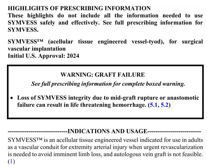 ¿Por qué? No lo sabremos a ciencia cierta, pero seguro que es porque esos pacientes habrían dado peores resultados y hubieran ensuciado los datos. De hecho, si nos fijamos en el prospecto de uso de Symvess que aprobó la FDA, veremos que está aprobado específicamente "para uso en extremidades" y siempre que no exista opción de realizar autotrasplante:
