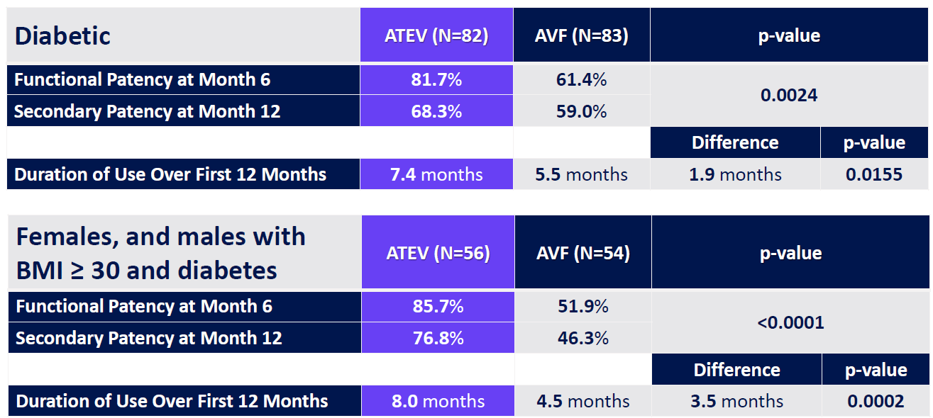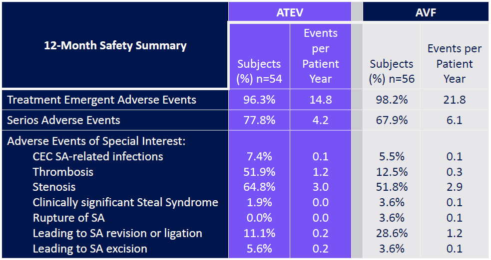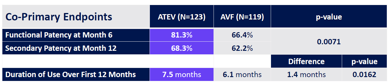 Se ha realizado un ensayo clínico de fase 3 con resultados bastante prometedores y mejor diseñados. En este caso sí que se incluyó un brazo control con pacientes con fístula AV vs. pacientes con el dispositivo ATEV.
