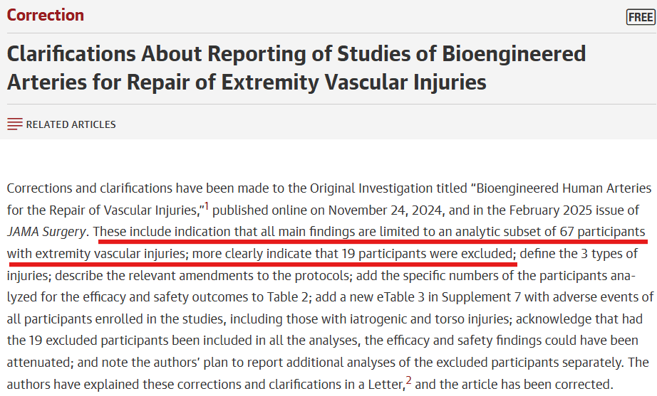Resulta que en el artículo habían informado que en los datos para hacer los cálculos y la estadística se había usado a los 69 pacientes del ensayo. No obstante, la realidad es que habían excluido a aquellos pacientes que tenían traumas en arterias que no pertenecían a las extremidades. Es decir, a aquellos pacientes con un trauma en el torso o el abdomen, no se les había tenido en cuenta a la hora de hacer la estadística sobre lo bueno que es Symvess.