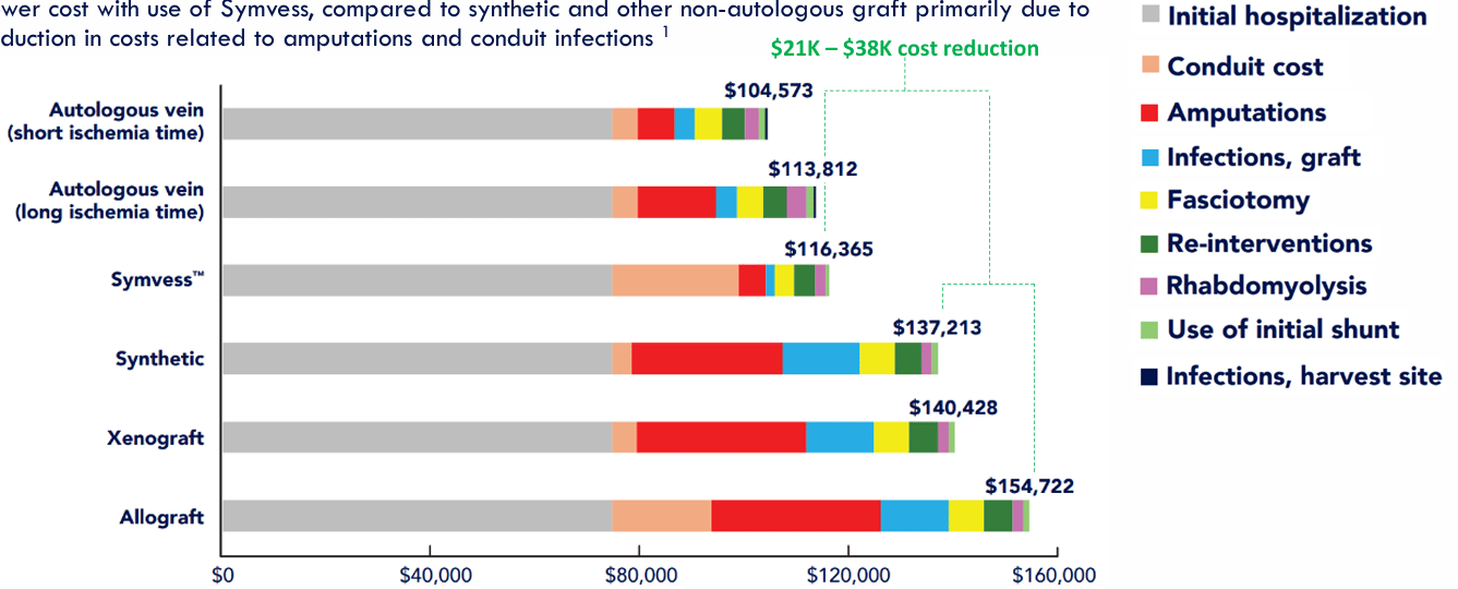 - Economía de la salud donde el coste de tratar a pacientes con Symvess es inferior a otros conductos plásticos. Esto se basa en un estudio donde se calcula que, a pesar de ser más caro que otras opciones, Symvess reduciría el coste total de la estancia hospitalaria de los pacientes.