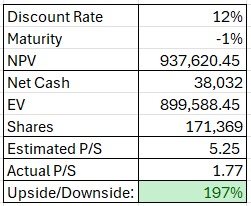 He elaborado una valoración rápida de la compañía basada en las estimaciones de ventas para cada línea de producto. Este sería mi escenario base:
